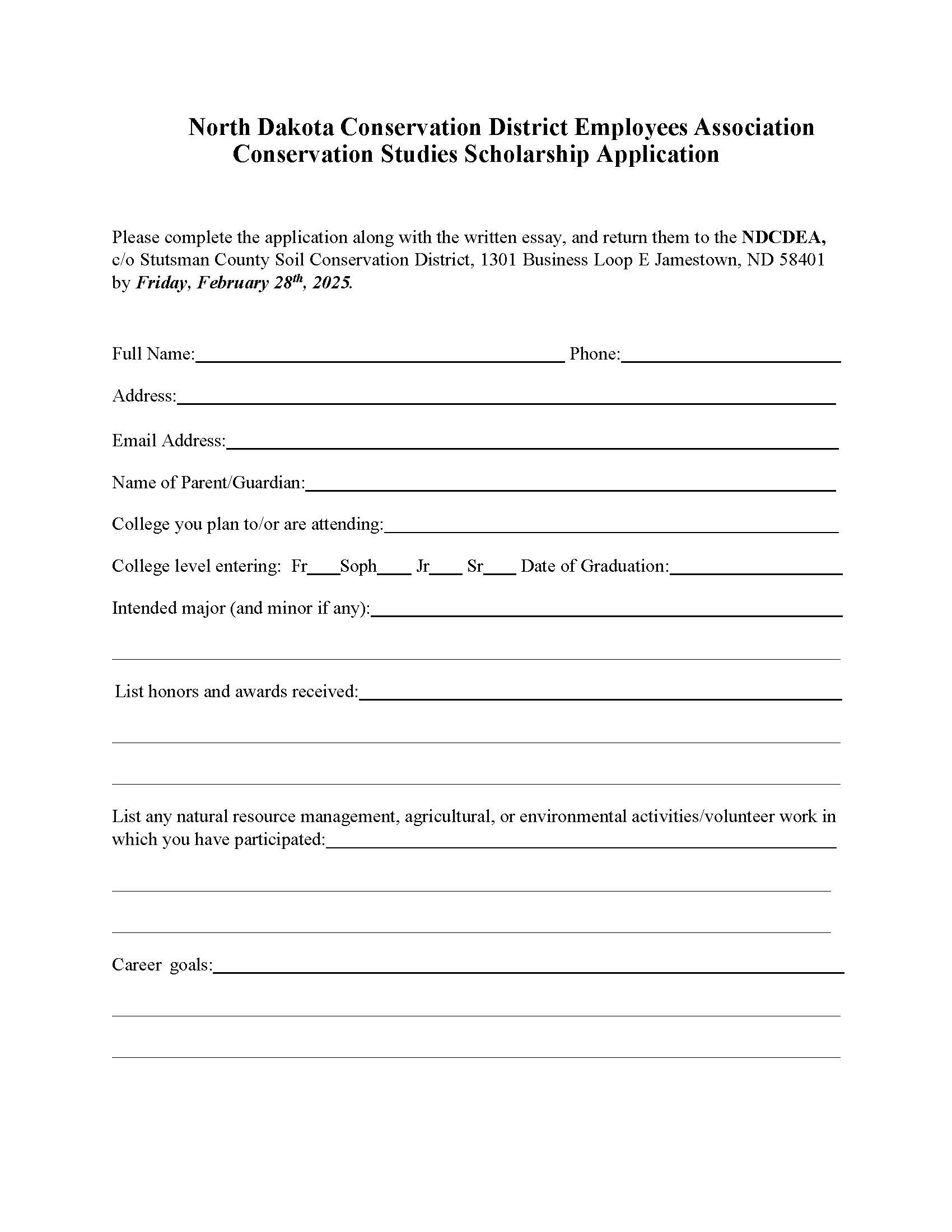 Previous Image Next Image NDCDEA 2025 Conservation Studies Scholarship Application Share this: Share on Facebook (Opens in new window) Facebook